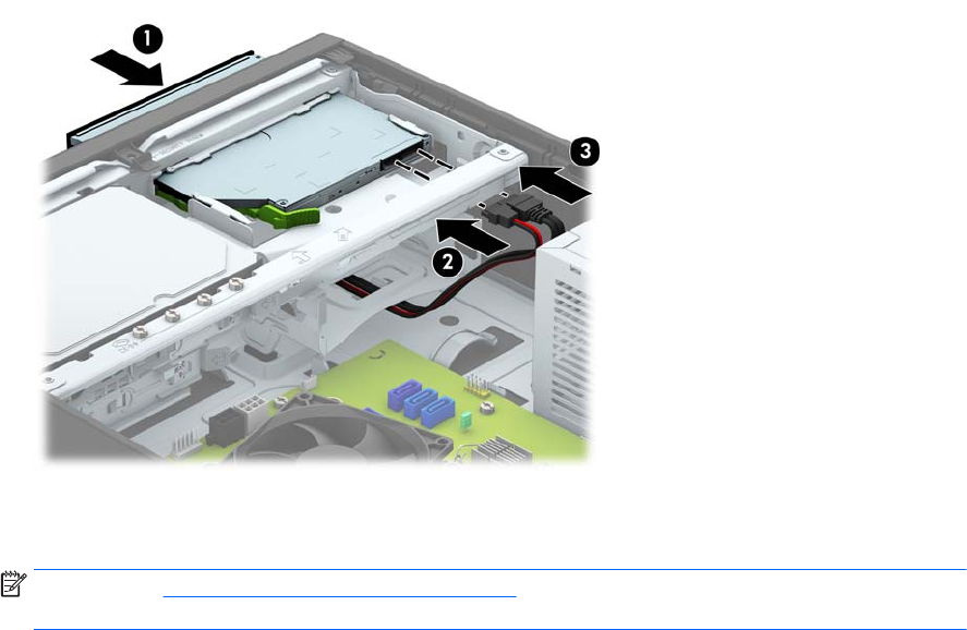 hinein, bis es einrastet (1), und verbinden Sie dann das Stromkabel (2) und das Datenkabel (3) mit der