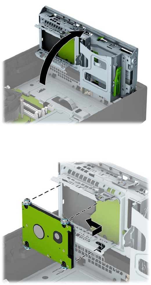 8. Drehen Sie den Laufwerkskäfig in seine aufrechte Position.