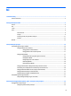 Indeks A adaptor AC, menguji 45 aksesibilitas 86 alat penunjuk, mengeset preferensi 23 antena nirkabel, mengenali 7 antena WLAN, mengenali 7 antena WWAN, mengenali 7 B baterai membuang 43 menampilkan sisa daya baterai 40 mengganti 43 menghemat daya 42 mengosongkan 40 menyimpan 42 tingkat isi baterai yang rendah 40 bepergian dengan membawa komputer 42, 84, 87 BIOS memastikan versi 78 memperbarui 77 mengunduh pembaruan 78 C citra layar, memindah-mindah 29 Computer Setup (Konfigurasi Komputer) Kata sandi admin