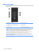 Előlapi részegységek A meghajtó-konfiguráció a típustól függően változhat. Egyes modelleken az optikaimeghajtó-rekeszt takarólemez fedi. 1 Vékony optikai meghajtó (opcionális) 6 SD-kártyaolvasó (opcionális) 2 Kétállású bekapcsológomb 7 Merevlemez-meghajtó működését jelző LED 3 USB 2.0-töltőport (külön tápellátással rendelkezik, fekete) 8 USB 2.0 port (fekete) 4 USB 3.