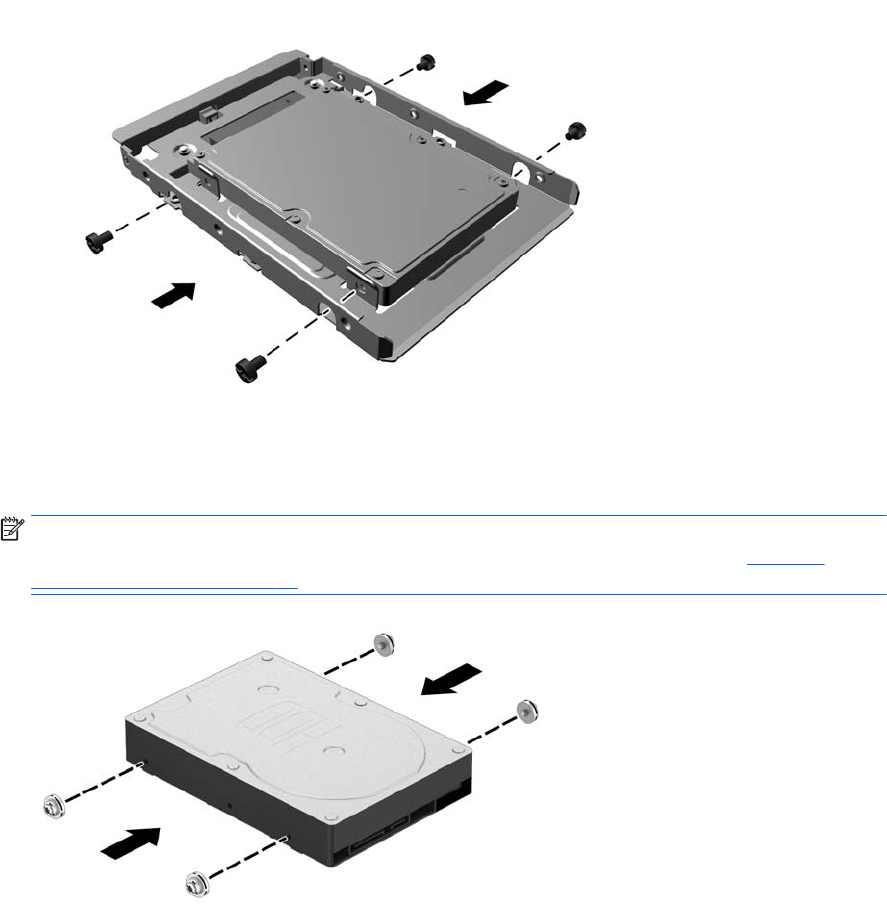 7. Nainstalujte čtyři montážní šrouby na strany 3,5palcové nebo 2,5palcové jednotky adaptérové konzoly