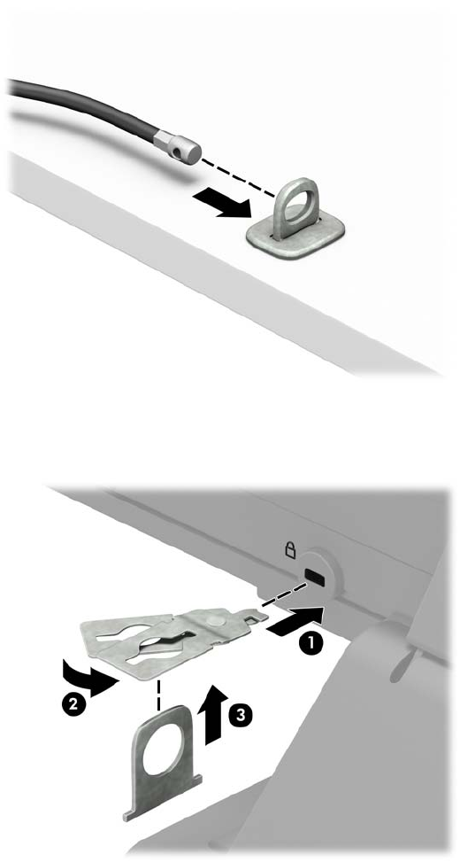 3. Protáhněte bezpečnostní kabel upevňovacím prvkem bezpečnostního kabelu.