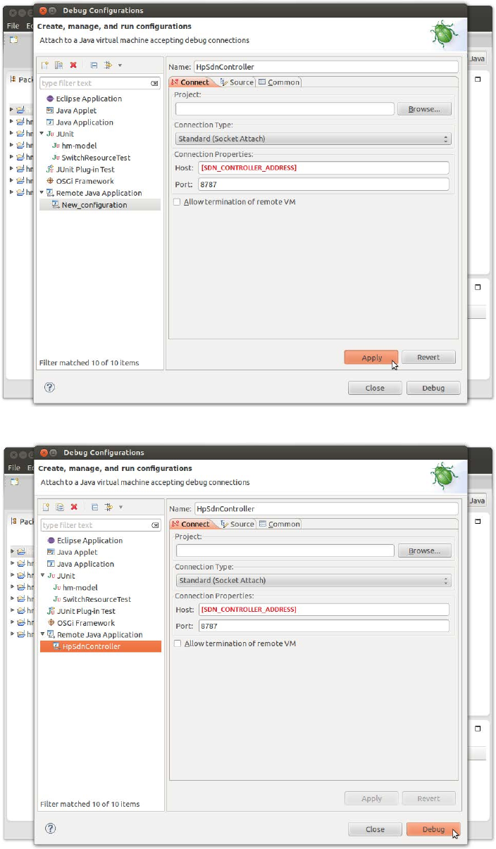 Figure 71 HP VAN SDN Controller’s Remote Debug Configuration