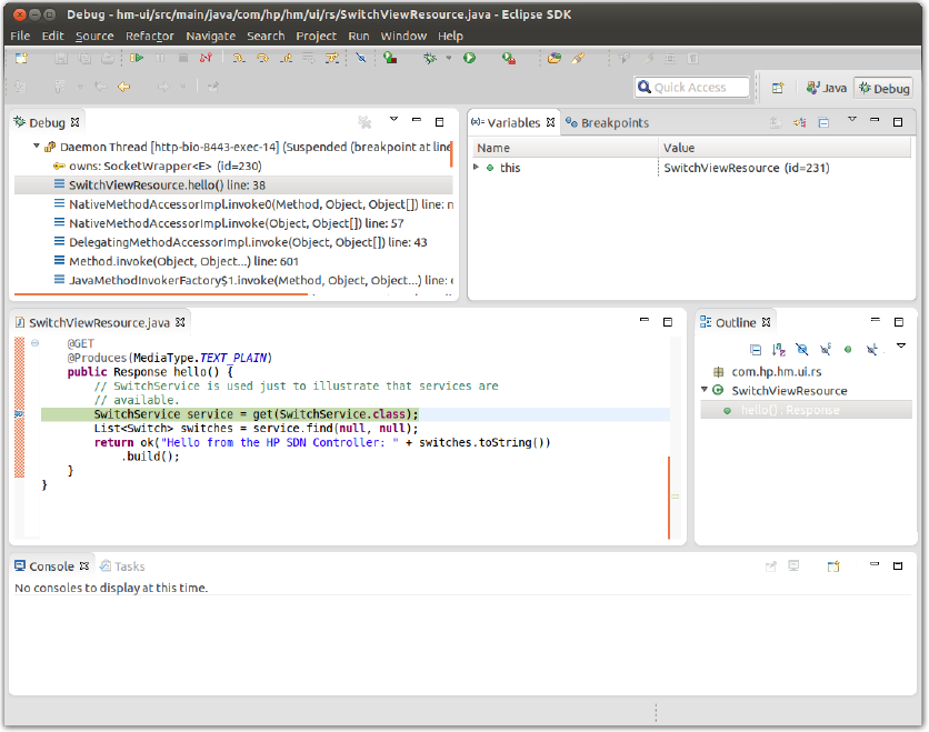 Figure 76 Debugging HP VAN SDN Controller