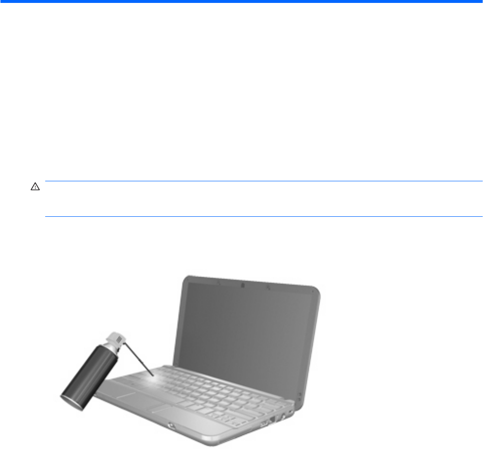 kruimels te verwijderen die onder de toetsen terechtkomen. U kunt een spuitbus met perslucht en een