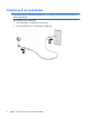 2 Forbindelse til et lokalt netværk Tilslutning til et lokalt netværk (LAN) kræver et RJ-45 netværkskabel med 8-ben (medfølger ikke). Hvis netværkskablet har et støjdæmpningskredsløb (1), der forhindrer forstyrrelse af radio- og TVmodtagelse, skal du rette kablets kredsløbsende (2) mod computeren. Sådan tilslutter du netværkskablet: 1. Sæt netværkskablet i computerens netværksstik (1). 2. Sæt den anden ende af kablet i et netværksstik i væggen (2).
