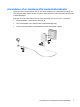 Tilslutning af et modemkabel ADVARSEL! For at mindske risikoen for elektrisk stød, brand eller beskadigelse af udstyret skal du undlade at tilslutte et modemkabel (medfølger kun ved udvalgte modeller) eller et telefonkabel til RJ-45stikket (netværksstik). Sådan tilslutter du et modemkabel: 2 1. Sæt modemkablet i computerens modemstik (1). 2. Sæt modemkablet i RJ-11-telefonstikket i væggen (2).