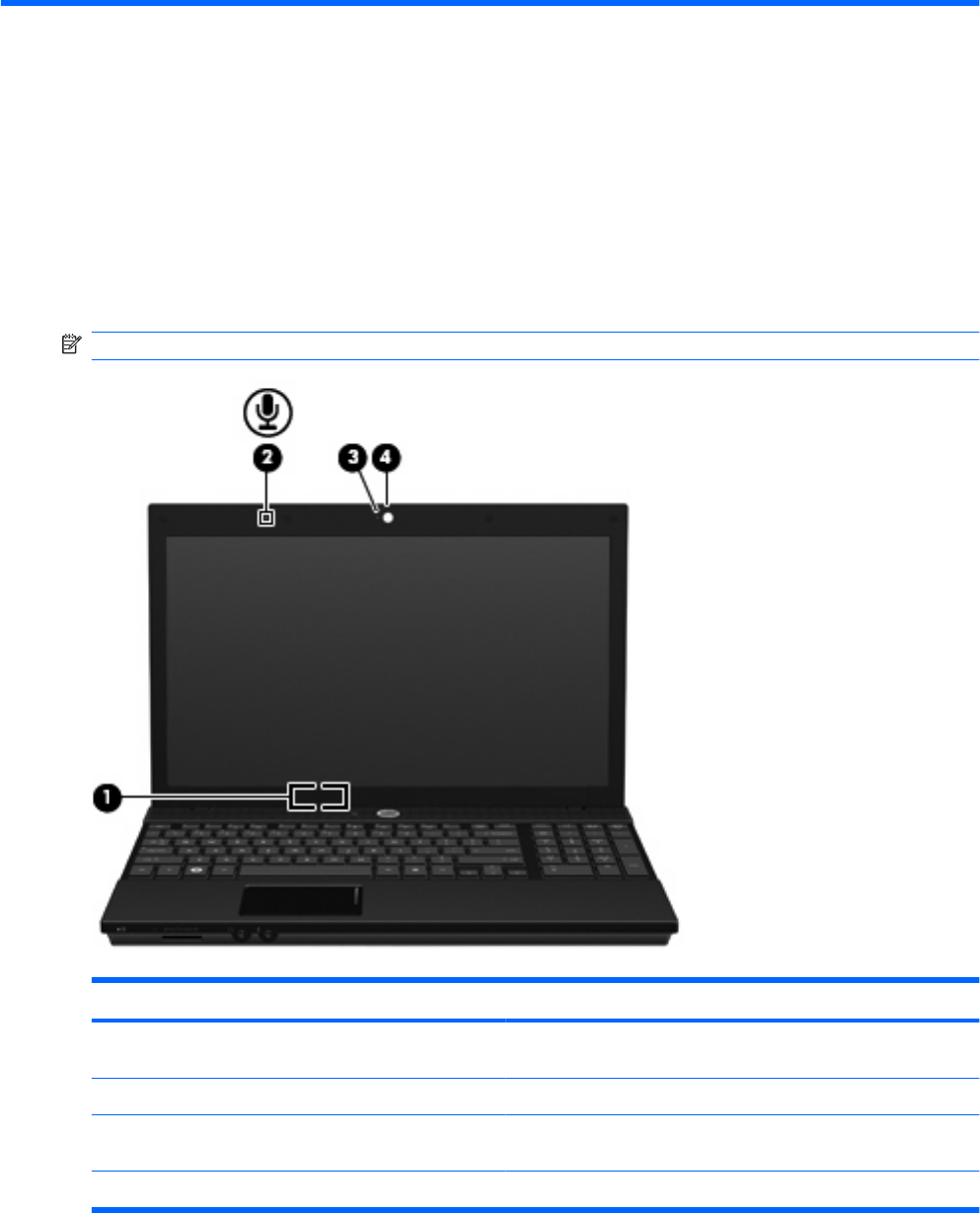 (4) Cámara web (sólo en algunos modelos) Permite grabar audio y vídeo y capturar fotos.