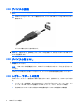 USB デバイスの接続 注意: USB コネクタの損傷を防ぐため、USB デバイスの接続時に必要以上の力を加えないでくだ さい。 ▲ USB デバイスをコンピューターに接続するには、デバイスの USB ケーブルを USB コネクタに 接続します。 デバイスが検出されると音が鳴ります。 注記: コンピューターに取り付けられている USB デバイスを表示するには、[Computer](コン ピュータ)を選択します。[Status](ステータス)の下を参照して、取り付けられている USB デバイ スの一覧を確認します。 USB デバイスの取り外し 注意: 情報の損失やシステムの応答停止を防ぐため、USB デバイスを取り外すときは、まずデバイ スを停止してください。 注意: USB コネクタの損傷を防ぐため、USB デバイスの取り外し時にケーブルを引っ張らないで ください。 USB デバイスの取り外し手順について詳しくは、デバイスに付属の説明書等を参照してください。 USB レガシー サポートの使用 USB レガシー サポート(初期設定で有効に設定されています)を使用すると、以下のことができま す。 2