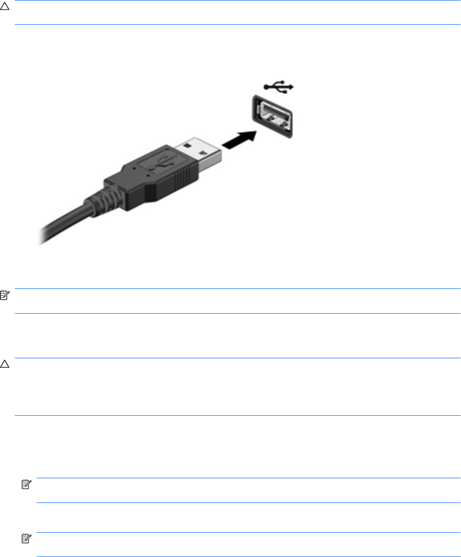 注記: USB デバイスを初めて接続した場合は、デバイスがコンピューターによって認識されたこと