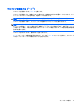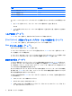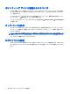 機能 ホットキー スピーカーの音を消す(ミュート) fn + f9 スピーカーの音量を下げる fn + f11 スピーカーの音量を上げる fn + f12 ホットキー コマンドをコンピューターのキーボードで使用するには、以下のどちらかの操作を行いま す。 ● 短く fn キーを押してから、ホットキー コマンドの 2 番目のキーを短く押します。 または ● fn キーを押しながらホットキー コマンドの 2 番目のキーを短く押した後、両方のキーを同時に 離します。 ヘルプを開く(fn + f1) fn + f1 ホットキーを押すと、実行中のプログラムのヘルプが表示されます。 [Print Options](印刷オプション)アプリケーションを起動する(fn + f2) fn + f2 ホットキーを押すと、[Print Options]アプリケーションが起動します。 Web ブラウザーを開く(fn + f3) Web ブラウザーを開くには、fn + f3 を押します。 インターネットまたはネットワーク サービスを設定するまで、fn + f3 ホットキーを押すとインター ネット接続ウィザード