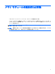 メモリ モジュールの追加または交換 メモリ モジュール コンパートメント は、コンピュータの裏面にあります。 コンピュータのメモリ容量をアップグレードするには、空いている拡張メモリ モジュール スロット にメモリ モジュールを追加するか、メイン メモリ モジュール スロットに装着されているメモリ モ ジュールを交換します。 警告! 感電や装置の損傷を防ぐため、電源コードとすべてのバッテリを取り外してからメモリ モ ジュールを取り付けてください。 注意: 静電気(ESD)によって電子部品が損傷することがあります。作業を始める前に、アースさ れた金属面に触るなどして、身体にたまった静電気を放電してください。 1