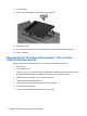 Tilføjelse eller udskiftning af hukommelsesmoduler Rummet til hukommelsesmodulet findes i bunden af computeren. Computerens hukommelseskapacitet kan opgraderes ved at tilføje et hukommelsesmodul i den tomme slot til hukommelsesmoduler eller ved at opgradere det eksisterende hukommelsesmodul i den primære hukommelsesmodulslot. ADVARSEL! Du kan mindske risikoen for elektrisk stød og beskadigelse af udstyret ved at koble netledningen fra og fjerne alle batterier, før du installerer et hukommelsesmodul.