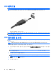 1394 장치 연결 주의: 1394 장치를 연결할 때는 1394 포트 연결단자가 손상되지 않도록 무리하게 힘을 주지 마십시 오. ▲ 컴퓨터에 1394 장치를 연결하려면 장치의 1394 케이블을 1394 포트에 연결하십시오. 장치가 검색되면 소리가 납니다. 1394 장치 중지 및 분리 주의: 1394 장치를 분리하기 전에 작업 내용이 유실되거나 시스템이 다운되지 않도록 반드시 장치를 중지하십시오. 주의: 1394 장치를 분리할 때는 1394 연결단자가 손상되지 않도록 케이블을 당기지 마십시오. 1. 작업 표시줄의 오른쪽 끝에 있는 알림 영역에서 하드웨어 안전하게 제거 아이콘을 두 번 누릅니 다. 주: 하드웨어 안전하게 제거 아이콘을 표시하려면 알림 영역에서 숨겨진 아이콘 표시 아이콘(< 또는 <<)을 누릅니다. 2. 목록에서 장치 이름을 누릅니다. 주: 장치가 표시되지 않으면 제거하기 전에 장치를 중지하지 않아도 됩니다. 3. 중지를 누른 다음 확인을 누릅니다. 4. 장치를 분리합니다.