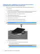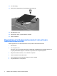 12. Luk dækslet (2). 13. Stram skruen på dækslet til hukommelsesmodulrummet (3). 14. Sæt batterierne i igen. 15. Slut til ekstern strøm, og tilslut eksterne enheder. 16. Tænd computeren. Opgradering af et hukommelsesmodul i den primære hukommelsesmodulslot Sådan opgraderer du et hukommelsesmodul i den primære hukommelsesmodulslot: 1. Gem dataene. 2. Luk computeren ned. Hvis du er i tvivl om, hvorvidt computeren er slukket eller i dvaletilstand, kan du tænde for den ved at trykke på tænd/sluk-knappen.