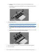 Ajout ou remplacement d’un module mémoire dans le connecteur d’extension de module mémoire Pour ajouter ou remplacer un module mémoire dans le connecteur d’extension de module mémoire, procédez comme suit : 1. Enregistrez votre travail. 2. Arrêtez l’ordinateur et fermez l’écran. Si vous ne savez pas si l’ordinateur est éteint ou en mode Veille prolongée, mettez-le sous tension en appuyant sur l’interrupteur d’alimentation. Mettez-le ensuite hors tension via le système d’exploitation. 3.
