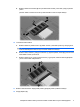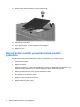 13. Bellek modülü bölmesi kapağının vidasını sıkıştırın (3). 14. Pilleri tekrar yerine takın. 15. Harici güç kaynağını ve harici aygıtları yeniden bağlayın. 16. Bilgisayarı açın. Birincil bellek modülü yuvasında bellek modülü yükseltme Birincil bellek modülü yuvasındaki bellek modülünü yükseltmek için, şu adımları izleyin: 1. Çalışmanızı kaydedin. 2. Bilgisayarı kapatın. Bilgisayarın kapalı mı, yoksa Hazırda Bekletme modunda mı olduğundan emin değilseniz, güç düğmesine basıp bilgisayarı açın.