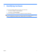 1 Identifying hardware To see a list of hardware installed in the computer, follow these steps: 1. Select Start > Computer > System properties. 2. In the left pane, click Device Manager. You can also add hardware or modify device configurations using Device Manager. NOTE: Windows® includes the User Account Control feature to improve the security of your computer.