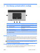 1 Korištenje pokazivačkih uređaja Komponenta Opis (1) TouchPad* Pomiče pokazivač i bira ili aktivira stavke na zaslonu. (2) Lijevi gumb TouchPada* Radi kao lijevi gumb na vanjskom mišu. (3) Čitač otisaka prstiju Omogućuje prijavu u OS Windows preko otiska prsta umjesto prijave lozinkom. (4) Desni gumb TouchPada* Radi kao desni gumb na vanjskom mišu. (5) TouchPadova zona za listanje Pomiče prema gore ili dolje. *Ova tablica opisuje zadane postavke.