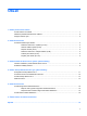 Obsah 1 Použití polohovacích zařízení Použití zařízení TouchPad ................................................................................................................... 1 Nastavení předvoleb ukazovacího zařízení ......................................................................................... 2 Připojení externí myši ...........................................................................................................................