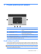 1 Použití polohovacích zařízení Komponenta Popis (1) TouchPad* Slouží k přesunutí ukazatele, výběru nebo aktivaci položek na obrazovce. (2) Levé tlačítko zařízení TouchPad* Používá se stejně jako levé tlačítko externí myši. (3) Snímač otisků prstů Umožňuje přihlašování do systému Windows pomocí snímače otisků prstů namísto přihlašování heslem. (4) Pravé tlačítko zařízení TouchPad* Používá se stejně jako pravé tlačítko externí myši.