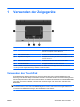 5 Verwenden von Ziffernblöcken Der Computer besitzt einen integrierten Ziffernblock und unterstützt auch einen optionalen externen Ziffernblock oder eine optionale externe Tastatur mit einem Ziffernblock. Komponente Beschreibung (1) fn-Taste Zum Ausführen häufig verwendeter Systemfunktionen in Kombination mit einer Funktionstaste bzw. der esc-Taste. (2) Integrierter Ziffernblock Kann wie die Tasten auf einem externen Ziffernblock verwendet werden.