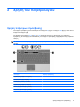 Στοιχείο Περιγραφή ● HP Wireless Assistant—Ενεργοποιεί ή απενεργοποιεί ασύρματες συσκευές. ΣΗΜΕΙΩΣΗ Εάν μια ασύρματη συσκευή έχει απενεργοποιηθεί στο Computer Setup, θα πρέπει πρώτα να ενεργοποιηθεί ξανά μέσω του Computer Setup πριν να είναι δυνατόν να ενεργοποιηθεί και να απενεργοποιηθεί μέσω του Wireless Assistant. ● Πληροφορίες συστήματος—Περιγράφουν τη μνήμη, την ταχύτητα του επεξεργαστή, το BIOS (βασικό σύστημα εισόδου-εξόδου) και άλλες σημαντικές πληροφορίες για το σύστημα.