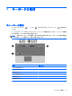 1 ポインティング デバイスの使用 名称 説明 (1) タッチパッド* ポインタを移動して、画面上の項目を選択したり、アクティブに したりします (2) 左のタッチパッド ボタン* 外付けマウスの左ボタンと同様に機能します (3) 指紋認証システム パスワードの代わりに指紋認証を使用して Windows®にログオン できます (4) 右のタッチパッド ボタン* 外付けマウスの右ボタンと同様に機能します (5) タッチパッドのスクロール ゾーン 画面を上下にスクロールします *この表では初期設定の状態について説明しています。 タッチパッドの設定を表示したり変更したりするには、[スタート]→ [コントロール パネル]→[プリンタとその他のハードウェア]→[マウス]の順に選択します。 タッチパッドの使用 ポインタを移動するには、タッチパッドの表面でポインタを移動したい方向に指をスライドさせま す。 タッチパッド ボタンは、外付けマウスの左右のボタンと同様に使用します。 タッチパッド垂直 スクロール ゾーンを使用して画面を上下にスクロールするには、スクロール ゾーンの線上で指を