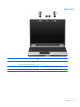 רכיבים עליונים לוח מגע תיאור רכיב )(1 לוח מגע* להזזת המצביע ולבחירה או הפעלה של פריטים על המסך. )(2 לחצן שמאלי של לוח המגע* פועל כמו הלחצן השמאלי בעכבר חיצוני. )(3 קורא טביעות אצבע )בדגמים נבחרים בלבד( מאפשר כניסה ל Windows-באמצעות טביעת אצבע ,במקום כניסה באמצעות סיסמה. )(4 לחצן ימני של לוח המגע* פועל כמו הלחצן הימני בעכבר חיצוני. )(5 אזור הגלילה של לוח המגע לגלילה למעלה או למטה. *טבלה זו מתארת את הגדרות היצרן .
