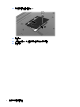 新增或更換記憶體模組 本電腦底部具有一個記憶體模組置放處。 將記憶體模組加入空的擴充記憶體模組插槽,或升級主要記憶體模組插槽中的現有記憶體模組,就可提 高電腦的記憶體容量。 警告! 若要避免觸電或損壞設備的風險,請先拔下電源線並取出所有電池,然後再安裝記憶體模組。 注意: 釋放靜電 (ESD) 會使電子組件受損。在開始執行任何程序之前,請先觸碰接地的金屬物件,以 確保釋放身上的靜電。 1