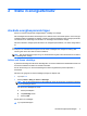 Spara på batteriet 20 ● Du väljer inställningar för låg strömförbrukning i Energialternativ på Kontrollpanelen i Windows. ● Stäng av trådlösa anslutningar och anslutningar för lokalt nätverk när du inte använder dem. ● Koppla bort externa enheter som inte är anslutna till en extern strömkälla, om du inte använder dem. ● Stoppa, inaktivera eller ta ut eventuella extra mediekort som du inte använder. ● Använd snabbtangenterna fn+f7 och fn+f8 om du vill anpassa skärmens ljusstyrka.