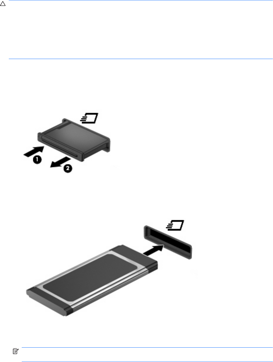 注意: コンピューターおよび外付けメディア カードの損傷を防ぐため、PC カードを ExpressCard