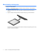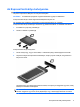 Memóriakártya behelyezése VIGYÁZAT! A számítógép és a memóriakártya károsodásának megelőzése érdekében ne helyezzen átalakítót az SD kártyaolvasóba. VIGYÁZAT! A memóriakártya-csatlakozó sérülésének elkerülése érdekében a memóriakártyát a lehető legkisebb erőkifejtéssel illessze be. 1. Tartsa a memóriakártyát úgy, hogy a címke felfelé, a csatlakozók pedig a számítógép felé nézzenek. 2. Helyezze a kártyát az SD kártyaolvasóba, majd tolja be addig, hogy pontosan érintkezzen.