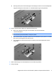 13. Dra åt skruven till minnesmodulfackets lock (3). 14. Sätt tillbaka batteriet. 15. Vänd datorn rätt igen och återanslut sedan nätströmmen och de externa enheterna. 16. Sätt på datorn.