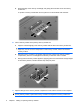 13. Tighten the memory module compartment cover screw (3). 14. Replace the battery. 15. Turn the computer right-side up, and then reconnect external power and external devices. 16. Turn on the computer.