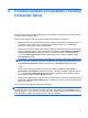 Nastavení výzvy programu MultiBoot Express Postup Computer Setup k zobrazení výzvy programu MultiBoot s nabídkou umístění pro zavedení při každém zapnutí počítače: 1. Nástroj Computer Setup spustíte zapnutím nebo restartováním počítače a stisknutím klávesy f10 v okamžiku, kdy je v dolním levém rohu obrazovky zobrazena zpráva „F10 = ROM Based Setup“ (F10 = konfigurační nástroj v paměti ROM). 2.