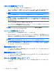 スタンバイを起動する(fn + f5) fn + f5 ホットキーを押すと、スタンバイが起動されます。 スタンバイが開始すると、情報がランダム アクセス メモリ(RAM)に保存され、画面表示が消えて 節電モードになります。コンピューターがスタンバイ状態の間は、電源ランプが点滅します。 注意: 情報の損失を防ぐため、スタンバイを起動する前に必ずデータを保存してください。 スタンバイを起動する前に、コンピューターの電源がオンになっている必要があります。 注記: コンピューターがスタンバイ状態のときに完全なロー バッテリ状態になった場合は、ハイバ ネーションが起動し、メモリに保存された情報がハードドライブに保存されます。完全なロー バッテ リ状態になった場合、工場出荷時設定ではハイバネーションが起動しますが、この設定は電源の詳細 設定で変更できます。 スタンバイ状態を終了するには、電源ボタンを短く押します。 fn + f5 ホットキーの機能は変更できます。たとえば、fn + f5 ホットキーを押すと、スタンバイでは なくハイバネーションが起動するように設定できます。 注記: Windows オペレーティング システ