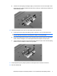 1 Dodavanje ili zamjena memorijskih modula Računalo ima jedno mjesto za memorijski modul, koje se nalazi s donje strane računala. Memorijski kapacitet računala može se nadograditi dodavanjem memorijskog modula u prazni utor za dodatni memorijski modul ili nadogradnjom postojećega memorijskog modula u utor za primarni memorijski modul. UPOZORENJE! Da smanjite opasnost od električnog udara i oštećenja opreme, isključite kabel za napajanje i izvadite sve baterije prije ugradnje memorijskog modula.