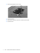 1 Muistimoduulien lisääminen tai vaihtaminen Tietokoneessa on yksi muistimoduulipaikka, joka sijaitsee tietokoneen pohjassa. Tietokoneen muistikapasiteettia voidaan laajentaa lisäämällä muistimoduuli vapaaseen laajennusmuistimoduulipaikkaan tai päivittämällä ensisijaisen muistimoduulipaikan tämänhetkinen muistimoduuli. VAARA Sähköiskujen ja laitteiston vaurioitumisen välttämiseksi irrota virtajohto ja kaikki akut ennen muistimoduulin asentamista.