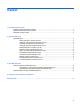 Kazalo 1 Uporaba kazalnih naprav Nastavitev možnosti kazalne naprave .................................................................................................. 1 Uporaba sledilne ploščice (TouchPad) ................................................................................................. 2 Priključitev zunanje miške .................................................................................................................... 2 2 Uporaba tipkovnice Uporaba bližnjic ....................