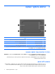 1 שימוש בהתקני הצבעה תיאור רכיב )(1 לוח מגע* להזזת המצביע ולבחירה או הפעלה של פריטים על המסך. )(2 לחצן שמאלי של לוח המגע* פועל כמו הלחצן השמאלי בעכבר חיצוני. )(3 אזור הגלילה של לוח המגע לגלילה למעלה או למטה. )(4 לחצן ימני של לוח המגע* פועל כמו הלחצן הימני בעכבר חיצוני. *טבלה זו מתארת את הגדרות היצרן .