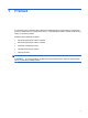 3 Provedení obnovy V případě nestability nebo selhání systému poskytne počítač nástroje pro obnovu vašich souborů: ● Nástroje obnovy Windows (jen vybrané modely): Nástroj zálohování Windows můžete použít pro obnovení informací, které jste předtím zálohovali. ● Disky Operační systém a Obnovení ovladače (součástí balení vašeho počítače): Disky můžete použít pro obnovení vašeho operačního systému a programů instalovaných při výrobě.