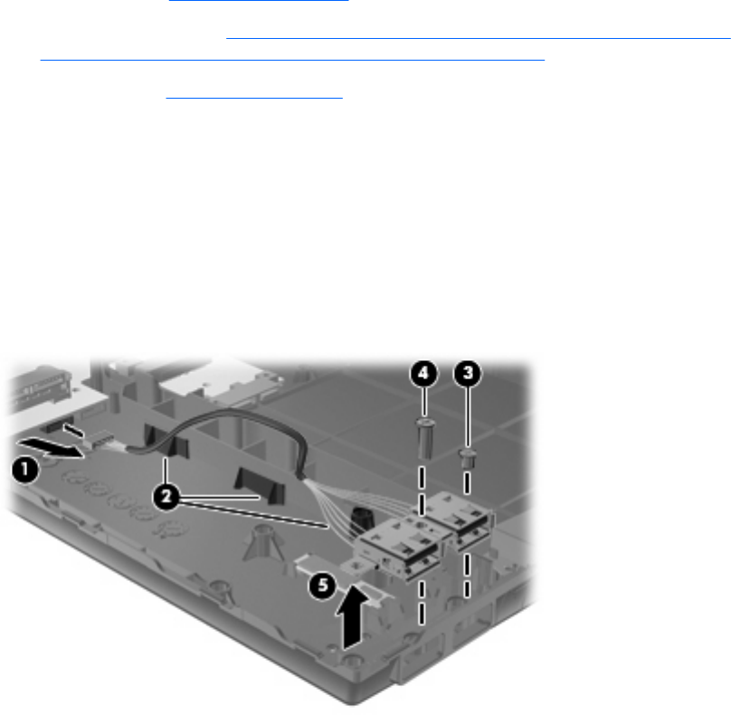4. Remove the USB connector assembly (5) from the base enclosure.