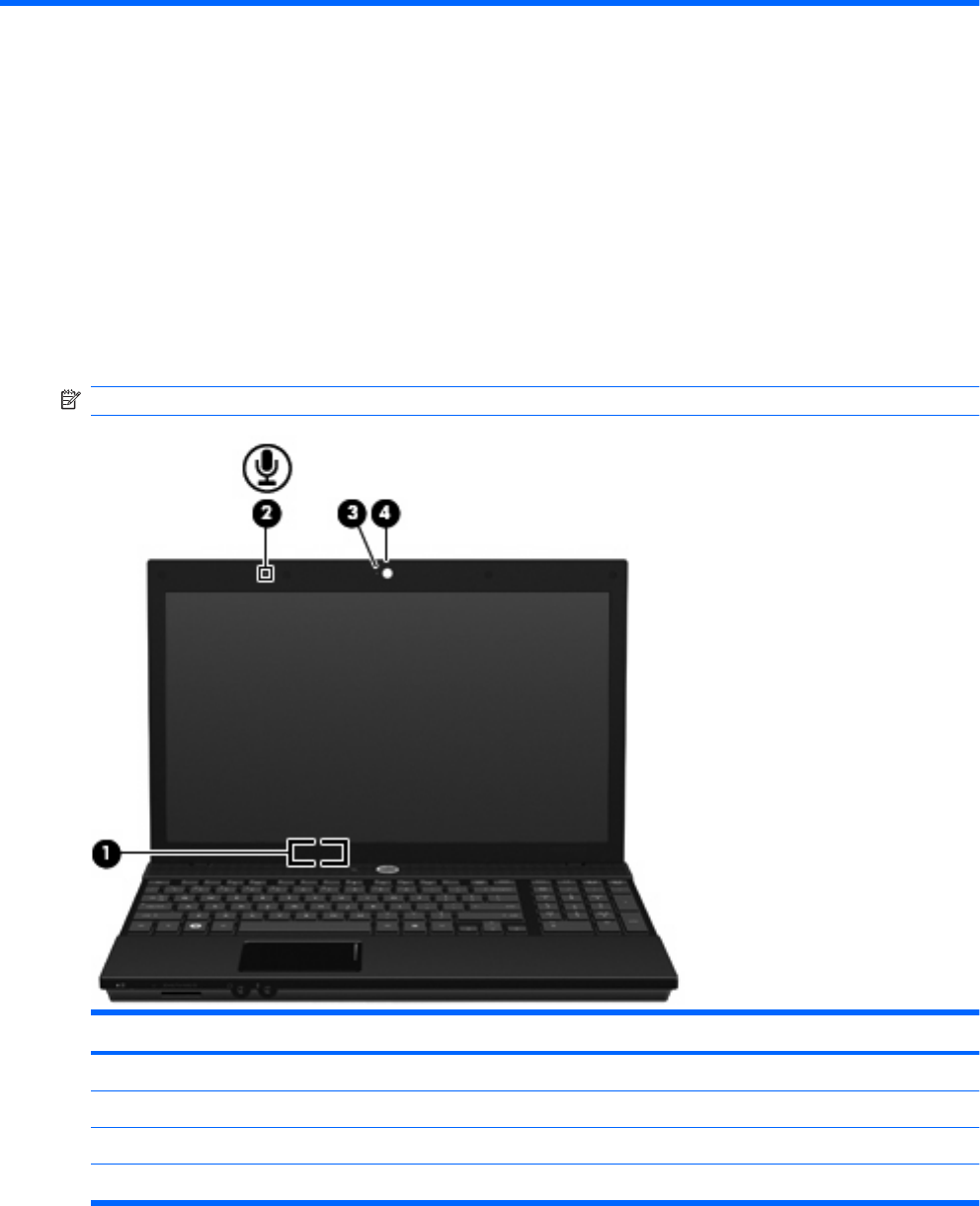 (4) Webcam (select models only) Records audio and video and captures still photographs.
