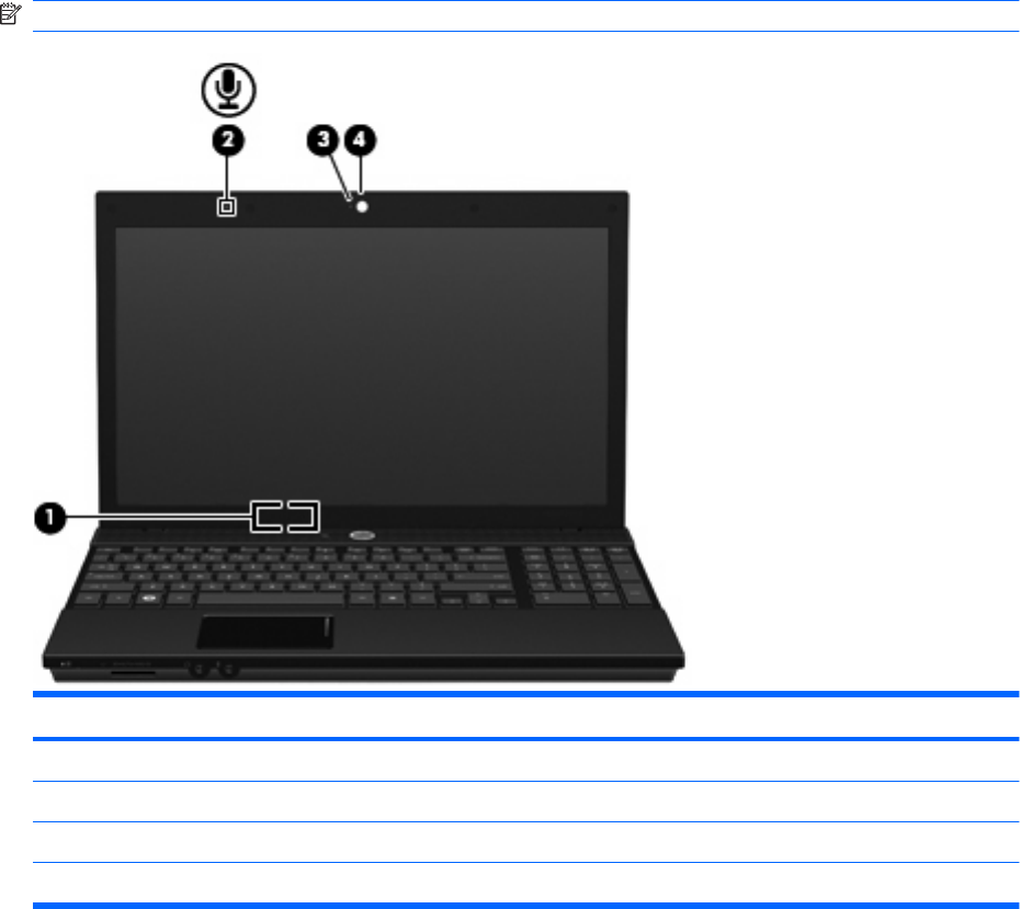 (4) Webcam (select models only) Records audio and video and captures still photographs.
