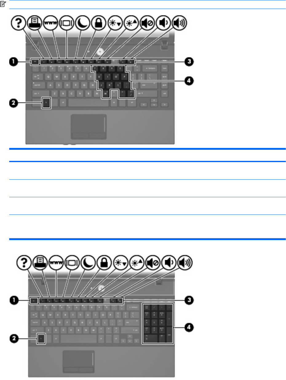 (4) Embedded numeric keypad keys When the keypad has been enabled, the keys can be used like the