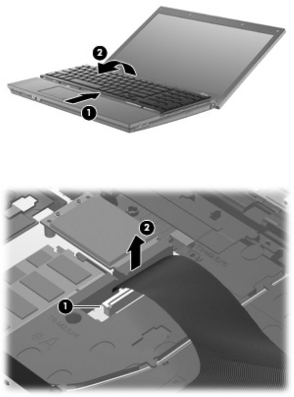 7. Release the zero insertion force (ZIF) connector (1) to which the keyboard cable is attached, and