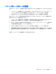 USB デバイスの接続 注意: USB コネクタの損傷を防ぐため、USB デバイスの接続時に必要以上の力を加えないでくだ さい。 ▲ USB デバイスをコンピューターに接続するには、デバイスの USB ケーブルを USB コネクタに 接続します。 デバイスが検出されると音が鳴ります。 注記: USB デバイスを初めて接続した場合は、デバイスがコンピューターによって認識されたこと を示すメッセージが通知領域に表示されます。 USB デバイスの停止および取り外し 注意: データの損失やシステムの応答停止を防ぐため、USB デバイスを取り外すときは、まずデバ イスを停止してください。 注意: USB コネクタの損傷を防ぐため、USB デバイスの取り外し時にケーブルを引っ張らないで ください。 USB デバイスの停止および取り外しを行うには、以下の操作を行います。 1.