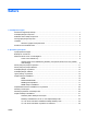 Saturs 1 Izstrādājuma iespējas Standarta konfigurācijas līdzekļi ........................................................................................................... 1 Priekšējā pārsega komponenti ............................................................................................................. 2 Multivides karšu lasītāja komponenti .................................................................................................... 3 Aizmugurējā paneļa komponenti .........................