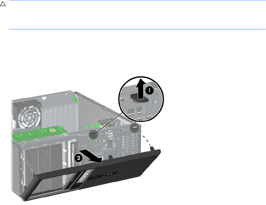 6. Σπρώξτε προς τα πάνω τις δύο προεξοχές αποδέσμευσης (1) και περιστρέψτε την πρόσοψη προς
